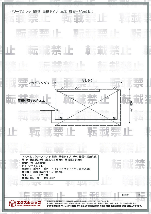 サイズ | 屋根幅 3,840mm 出幅 2,085mm |