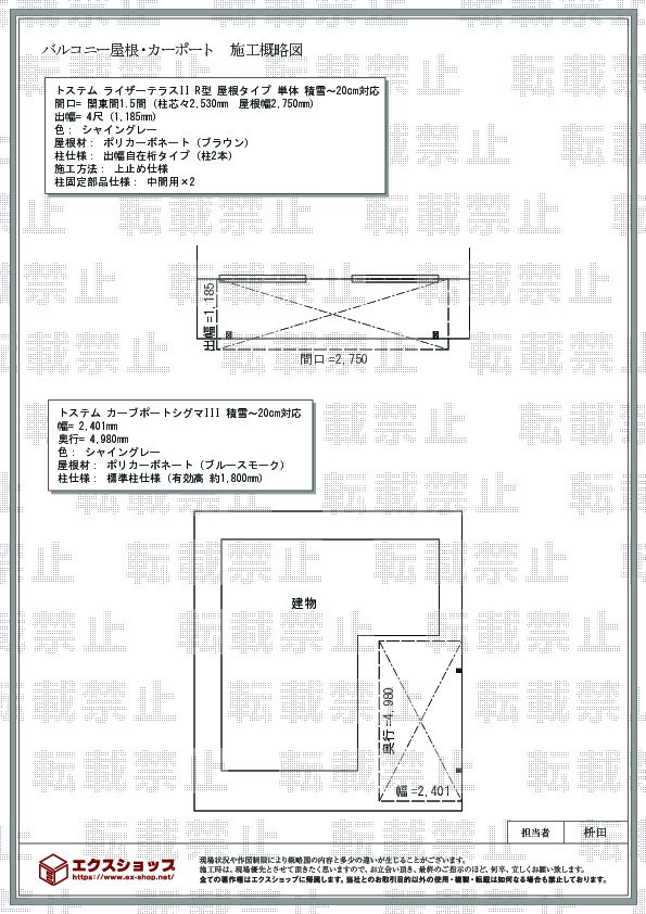 | サイズ | 屋根幅 2,750mm 出幅 1,185mm |