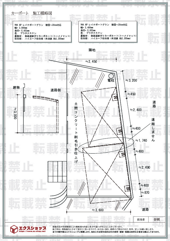 この度はレイナポートグランの施工をご依頼頂きまして、誠に有り難うございます。弊社の対応が至らず、お客様にご迷惑・ご心配をお掛け致しまして、大変申し訳ございませんでした。今後はお客様にご信頼頂ける企業となれますよう、迅速且つきめ細やかな対応を徹底して参りたいと存じます。ご迷惑をお掛けしたにも関わらず施工内容にご満足頂けましたとのお言葉、大変恐縮でございます。トーメイマットの爽やかなカーポートがご自宅の外観を損ねることの無い上品なお仕上がりでございますね。この度の施工によりお客様の生活がより豊かなものになりますことを、心より願っております。また何かお気づきの点等ございましたら、お手数ではございますがエクスショップまでご連絡下さいますよう、宜しくお願い致します。