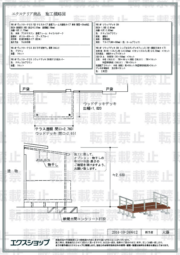 この度はヴェクターテラス F型 テラスタイプ及びリウッドデッキ 200の施工をご依頼頂き、誠に有り難うございました。せっかく弊社を信頼し、お選び頂いたにも関わらず、ご不満の残る結果となりましたこと、大変申し訳なく存じております。今後、お客様がご不安な思いをされることのないよう、正確な業務を心掛け、きめ細やかな対応を心掛けて参ります。貴重なご意見をお寄せ頂き、誠に有り難うございました。また何かお気づきの点などがございましたら、お手数ではございますが、エクスショップまでご連絡下さいますよう、宜しくお願い致します。