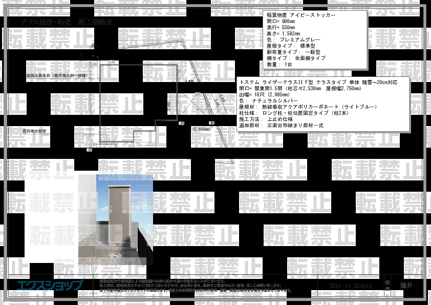 テラス屋根と物置の施工を、エクスショップにご依頼頂き、誠に有り難うございました。敷地の形状に合わせて加工されたライザーテラスII F型 テラスタイプが綺麗に納まり、自転車置き場としてや、雨の日のお洗濯物干し場としてなど様々な用途にご活用頂けますね。スリムなアイビーストッカーも、お荷物の整理に重宝して頂けるものと存じます。これからもお客様のご満足の為に、エクスショップは日々精進して参ります。また機会がございましたら、是非弊社にご用命ください。またのご利用を心よりお待ち申し上げております。