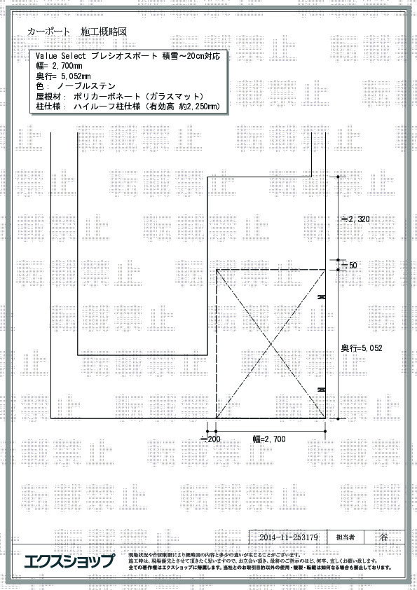 | 柱仕様 | 出幅自在桁タイプ(柱2本) |