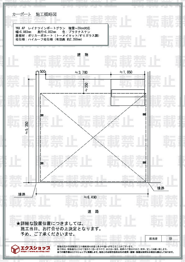 | サイズ | 屋根幅 5,480mm 出幅 1,485mm |