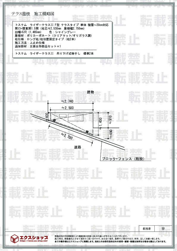 | サイズ | 屋根幅 2,750mm 出幅 1,485mm |