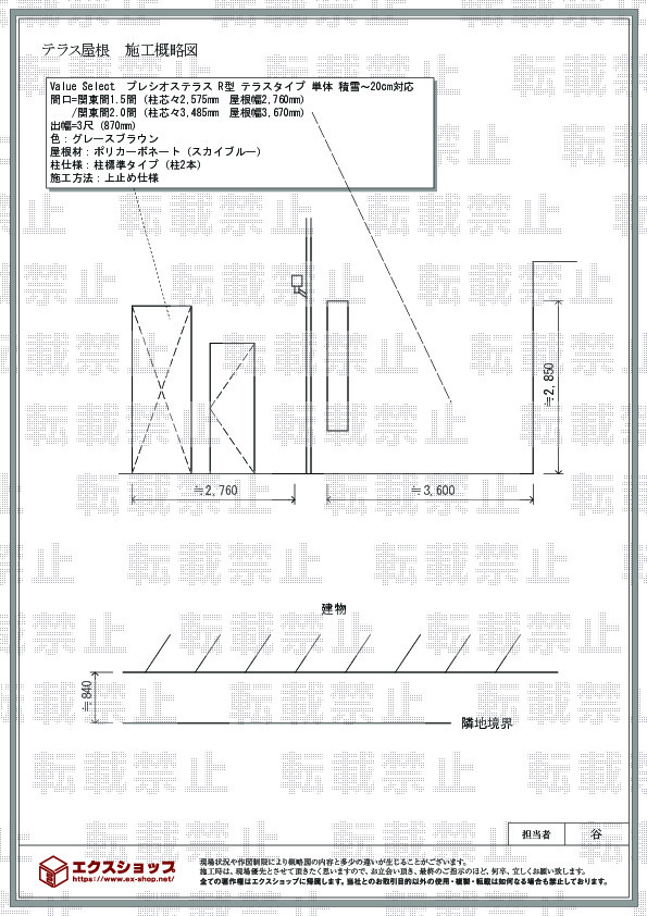 | サイズ | 屋根幅 2,760mm 出幅 870mm |