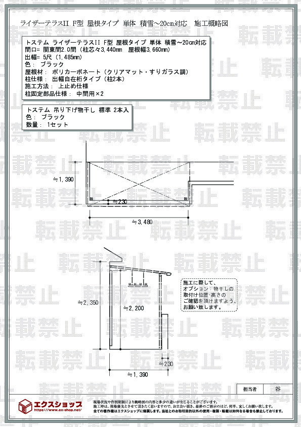 | サイズ | 屋根幅 3,660mm 出幅 1,485mm |