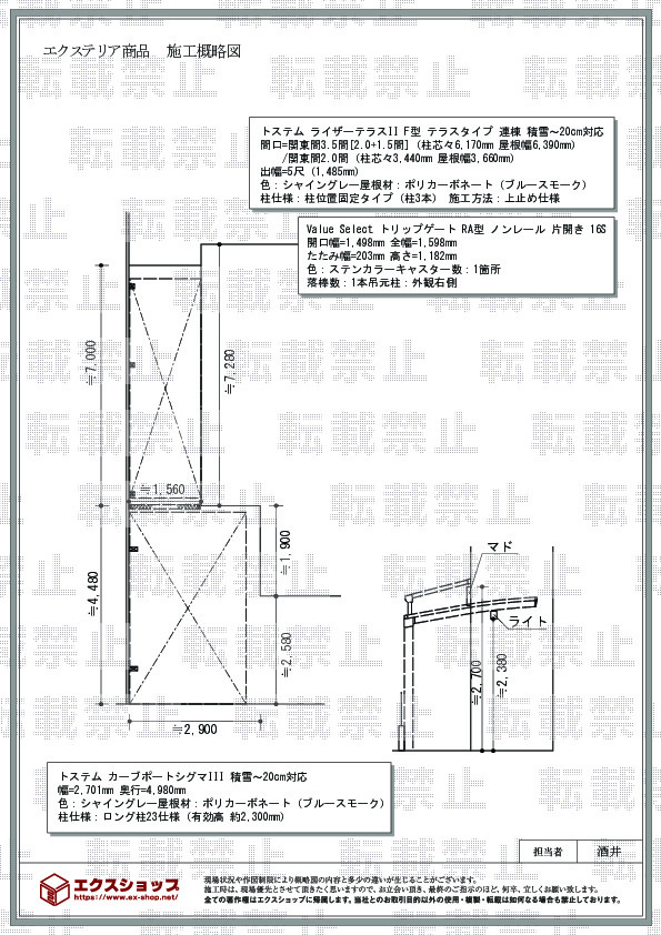 | サイズ | 屋根幅 3,660mm 出幅 1,485mm |