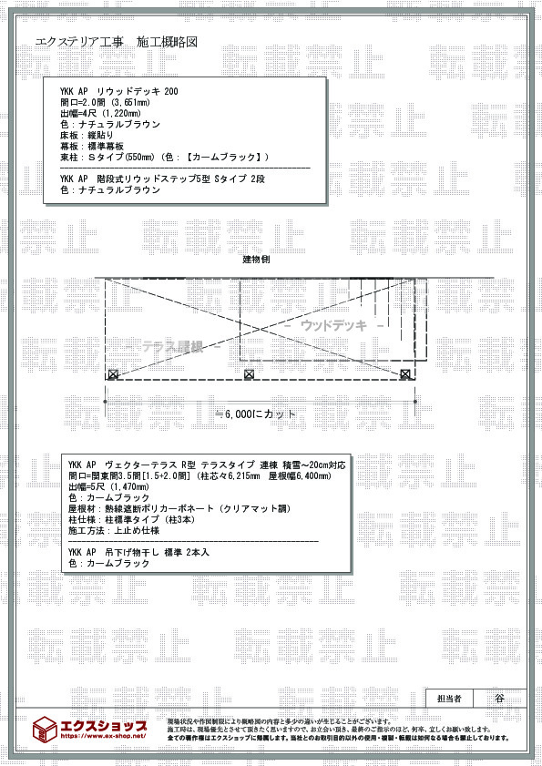 | サイズ | 屋根幅 6,400mm 出幅 1,470mm |
