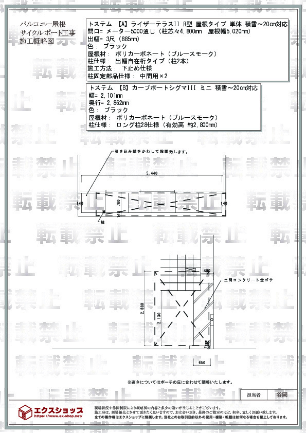 | 柱仕様 | 出幅自在桁タイプ(柱2本) |