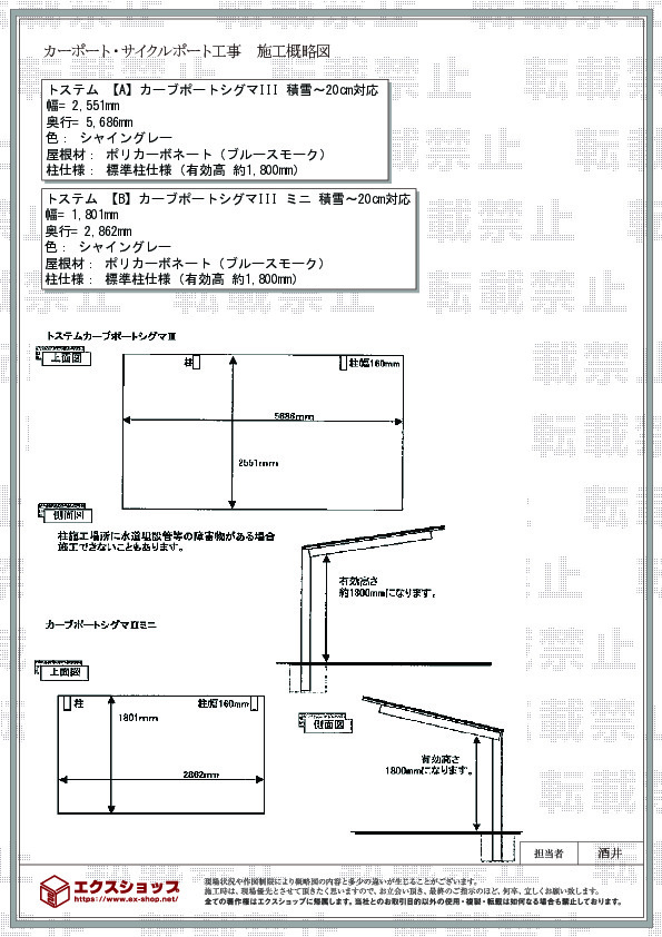 ネット販売は顔の見えないお取引となりますので、ご不安もおありであったかと存じますが、弊社をご信頼頂き施工までお任せ頂きまして大変光栄でございます。シンプルなシャイングレーのカーポートとサイクルポートがスッキリとご自宅に納まり、景観を損なうことの無い素敵なお仕上がりでございますね。今後もお客様の笑顔の為日々精進して参りますので、また機会がございましたらエクスショップをご利用下さいますよう、宜しくお願い致します。