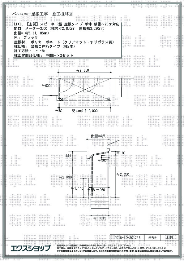 | サイズ | 屋根幅 3,020mm 出幅 1,185mm |