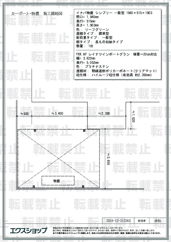シンプリーとレイナツインポートグランの施工のご依頼を頂きまして、誠に有り難うございます。リーフグリーンのポップで爽やかお色の物置は、お庭の雰囲気が明るくなりますね。収納力に優れ、置き場のないお荷物や普段使わない物まで、スッキリと収納頂き、空いたスペースを有効にお使い頂けますと嬉しく存じます。物置も包み込むように完成しましたカーポートは熱線遮断ポリカーボネート(クリアマット)の屋根が雨や紫外線を遮り、ご実感頂いているガラスの凍結を防ぐだけでなく、夏場の車内の温度上昇を和らげますので、一年を通して快適にお使い頂けるものと存じます。これからもお客様対応の全てにご満足頂けるよう、スタッフ一同努力を重ねて参りますので、また機会がございましたら、是非エクスショップにご用命頂きますよう、宜しくお願い申し上げます。