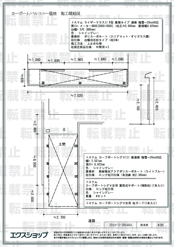 | サイズ | 屋根幅 6,020mm 出幅 885mm |