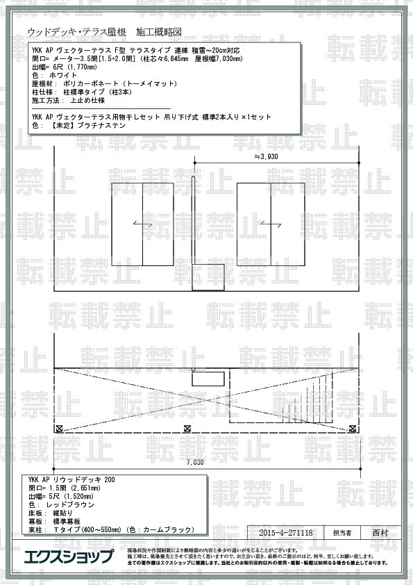 | サイズ | 屋根幅 7,030mm 出幅 1,770mm |