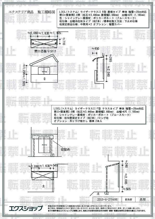 この度はライザーテラスII R型 屋根タイプ及びライザーテラスII F型 テラスタイプの施工をご依頼頂き、誠に有り難うございました。施工後、便利にご活用頂き、ご家族皆様が快適な毎日をお過ごし頂いておりますこと、私どもも大変嬉しく存じます。これからもエクスショップをご利用頂いた皆様に笑顔の輪が広がりますよう、エクスショップは日々精進して参ります。また機会がございましたら、是非弊社にご用命くださいますよう、宜しくお願い致します。