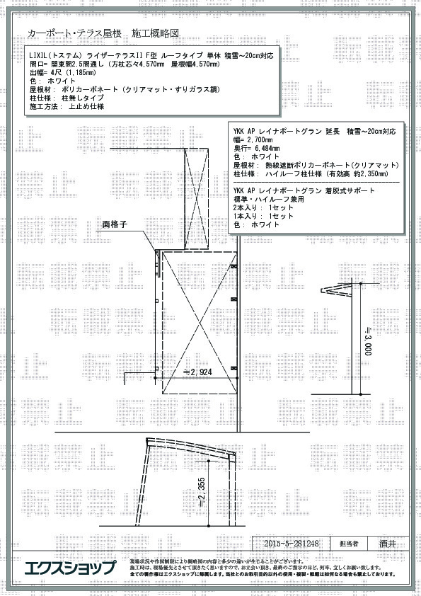 | サイズ | 屋根幅 4,570mm 出幅 1,185mm |