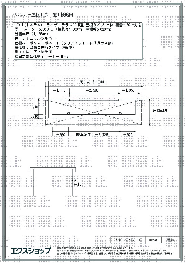 サイズ | 屋根幅 5,020mm 出幅 1,185mm |