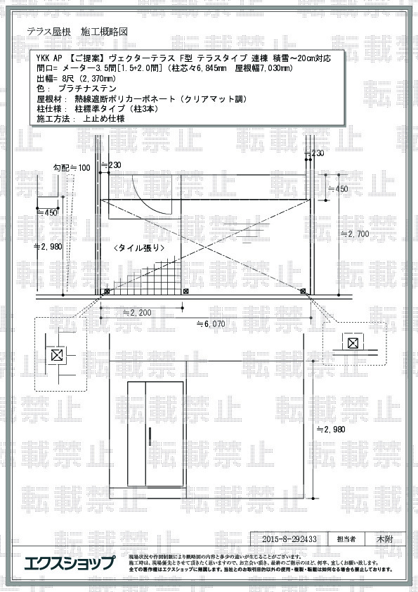 | サイズ | 屋根幅 7,030mm 出幅 2,370mm |