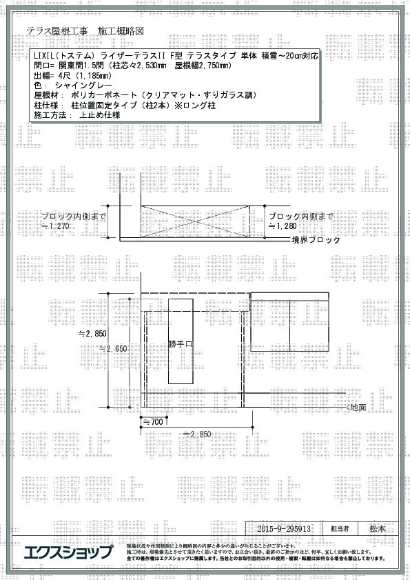 | サイズ | 屋根幅 2,750mm 出幅 1,185mm |