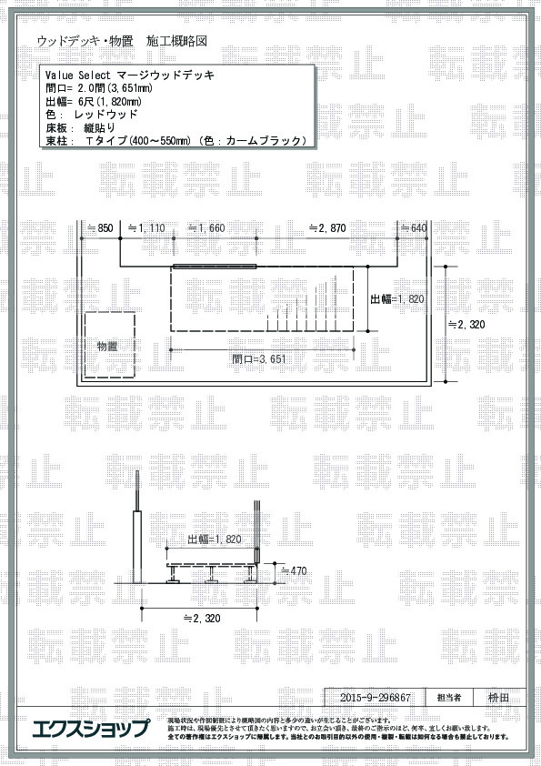 | サイズ | 間口 3,651mm 出幅 1,820mm |