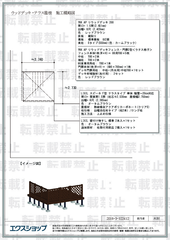 リウッドデッキ 200とスピーネ F型 の施工をご依頼頂きまして、誠に有り難うございます。オータムブラウンのウッドデッキとオプションのデッキフェンスがご自宅の外観とマッチして、まるでお伽噺に出てくるような素敵なお仕上がりでございますね。お部屋とお庭を繋ぐウッドデッキが完成して、お庭の用途も広がるものと存じます。テラス屋根の施工につきまして、現場調査内容と差異があり、ご心配とご迷惑をお掛け致しましたこと、深くお詫び申し上げます。ご指摘頂きまして、有り難うございました。今後は、事前の確認事項を徹底するよう、弊社と提携施工店との連携を強めて参りたいと存じます。またのご利用を、心よりお待ち申し上げております。