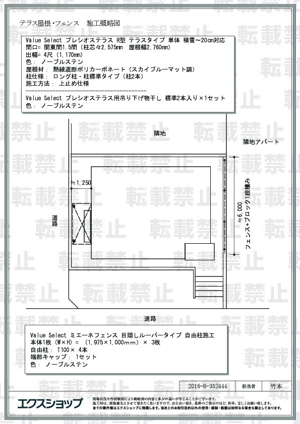 プレシオステラス R型とミエーネフェンス 目隠しルーバータイプ の2点同時施工をご依頼頂きまして、誠に有り難うございます。アール型にカーブした屋根が雨の吹込みを防ぎ、お洗濯物も安心して干して頂けるものと存じます。紫外線や熱も遮断致しますので、室温の上昇も抑えられるかと存じます。外部からの視線を遮るフェンスが完成したことにより、これまで以上にゆったりとお寛ぎ頂けますね。今後も、格安のお値段での最高品質の商品の提供にこだわって参りたいと存じますので、また機会がございましたら是非、弊社にご用命くださいますよう宜しくお願い申し上げます。