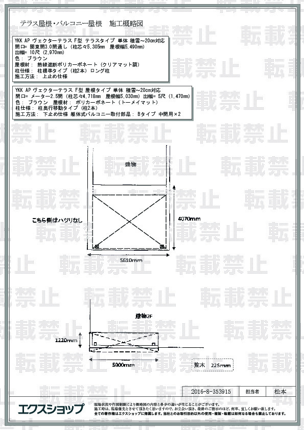 サイズ | 屋根幅 5,490mm 出幅 2,970mm |