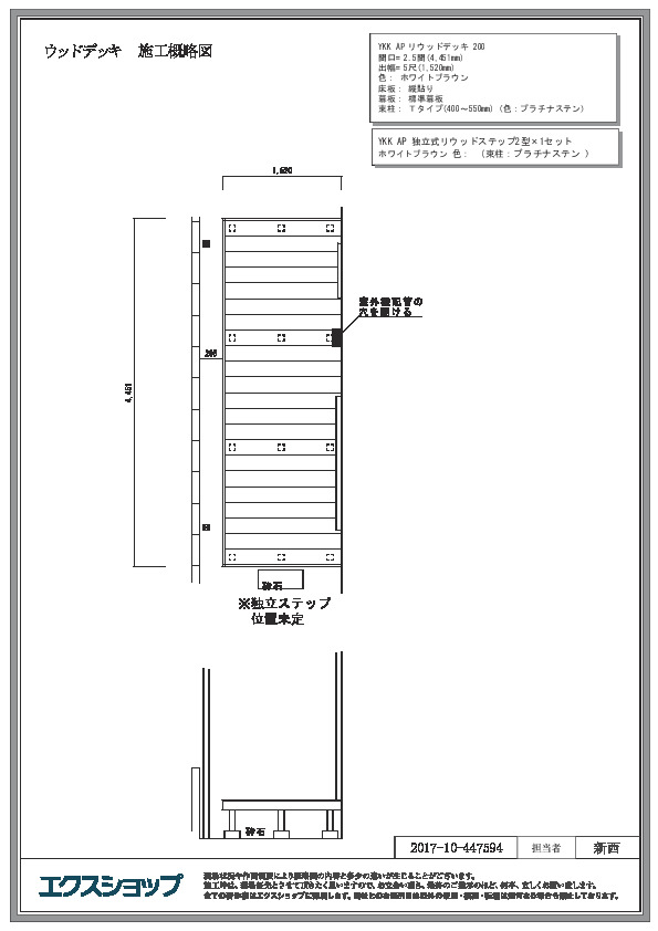 リウッドデッキ 200とミエーネフェンス 目隠しルーバータイプの施工をご依頼頂きまして、誠に有り難うございます。勝手口とフェンスとの間にお部屋と段差の無いウッドデッキが完成して、敷地を有効にご活用頂けるものと存じます。ルーバータイプのフェンスも綺麗に納まり、外部からの視線が遮られ、快適にお過ごし頂けるものと存じます。今後も、常に、お客様のご希望にかなった完成を目指し努力して参ります。また機会がございましたら、是非エクスショップにご用命頂きますよう、宜しくお願い致します。
