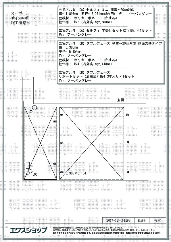 この度は弊社でセルフィ ミニとダブルフェースの施工のご依頼を頂きまして、誠に有り難うございます。側面で屋根を支えるスッキリとしたデザインのカーポートと、カーポートに寄り添うように完成したサイクルポートは、お色を統一された事で、一体感がございますね。雨や紫外線からお車・自転車などを守り、雨天時にも雨に濡れずにお車から乗り降りして頂けるものと存じます。スタイリッシュなカーポートとサイクルポートをお気に召して頂き、永くご愛用頂けますと幸いでございます。これからもお客様のご期待に応えられるよう、スタッフ一同努力を重ねて参りますので、また機会がございましたら、是非エクスショップにご用命頂きますよう、宜しくお願い申し上げます。