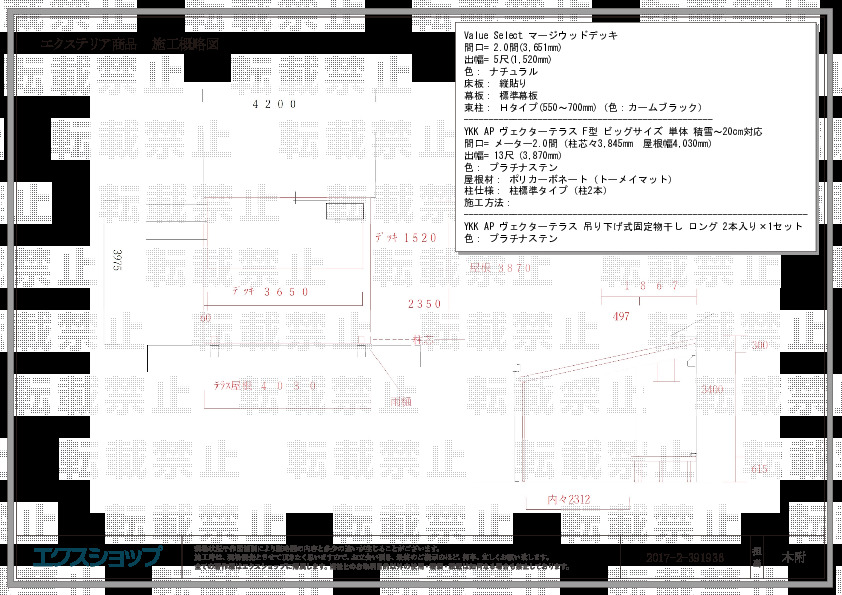 この度は弊社でマージウッドデッキとヴェクターテラス F型 ビッグサイズの施工のご依頼を頂きまして、誠に有り難うございます。レンガ調の外壁のイメージにマッチしたウッドデッキと、テラス屋根がスッキリと収まりました事、喜ばしく存じます。カーポートとしてお使い頂ける広さのテラス屋根はウッドデッキと併せて設置された事で、雨や紫外線をしっかりと遮りますので、雨天時にも快適にお使い頂けるものと存じます。これからもお客様の笑顔溢れる暮らしの為に、スタッフ一同努力を重ねて参りますので、また機会がございましたら、是非エクスショップにご用命頂きますよう、宜しくお願い申し上げます。