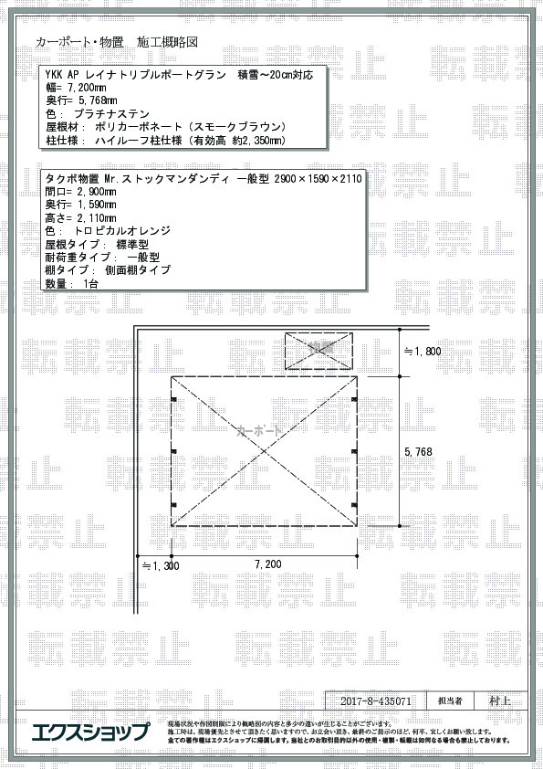 この度は弊社でレイナトリプルポートグランとMr.ストックマンダンディの施工のご依頼を頂きまして、誠に有り難うございます。広々としたカーポートと大きな物置が敷地内にスッキリ収まりました事、スタッフ一同嬉しく存じます。カーポートが雨や紫外線からお車を守り、物置が大きなお荷物から細かな物まで収納し、空いたスペースを有効にお使い頂けますと幸いでございます。休日のご連絡につきまして、弊社の電話受付に繋がりにくい時間がございました事、心よりお詫び申し上げます。今後は出来る限り長く対応出来るよう、社内での協議を重ねて参ります。これからもお客様のご期待に応えられるよう、スタッフ一同努力を重ねて参りますので、また機会がございましたら、是非エクスショップにご用命頂きますよう、宜しくお願い申し上げます。