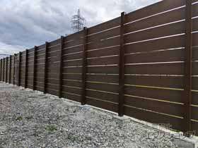プラド/one(ワン)フェンス ジョイントあり仕様は高密度ポリエチレン樹脂に木粉を混合した複層合成木材のフェンスです。気温差での伸縮や経年劣化による硬化を低減する素材で、天然木の風合いを感じさせる意匠性もあわせ持っています。目隠し率は約94%です。