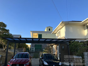 フーゴF (フラットスタイル) ワイドと宅配ポストの施工をご依頼頂きまして、誠に有り難うございます。ナチュラルシルバーのカーポートやホワイトのポストが、ご自宅の外観と調和して、一体感のあるお仕上がりですね。ご自宅前のスペースをしっかりガードする屋根ですが、熱線吸収ポリカーボネート(クリアマットS・すりガラス調)の屋根材が光を通し、暗さは感じられませんね。宅配ポストは、お荷物を受け取る方にも、配達される方にも優しいエクステリアでございます。機能的なうえに、玄関先のアクセントにもなりますので、お気に召して頂き、長くご愛用頂けましたら幸いです。これからも、エクステリアの施工を通じて、豊かな暮らしのお手伝いをして参りたいと存じます。また機会がございましたら、是非エクスショップにご用命頂きますよう宜しくお願い致します。